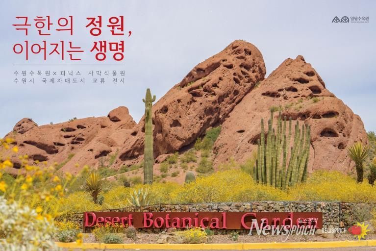 뉴스펀치 박상훈 기자 | 수원수목원은 3월 22일까지 일월수목원 방문자센터 1층에서 수원시 국제자매도시인 피닉스시의 피닉스 사막식물원을 소개하는 사진전 ‘극한의 정원, 이어지는 생명(미국 피닉스 사막식물원 사진전)’을 연다.
