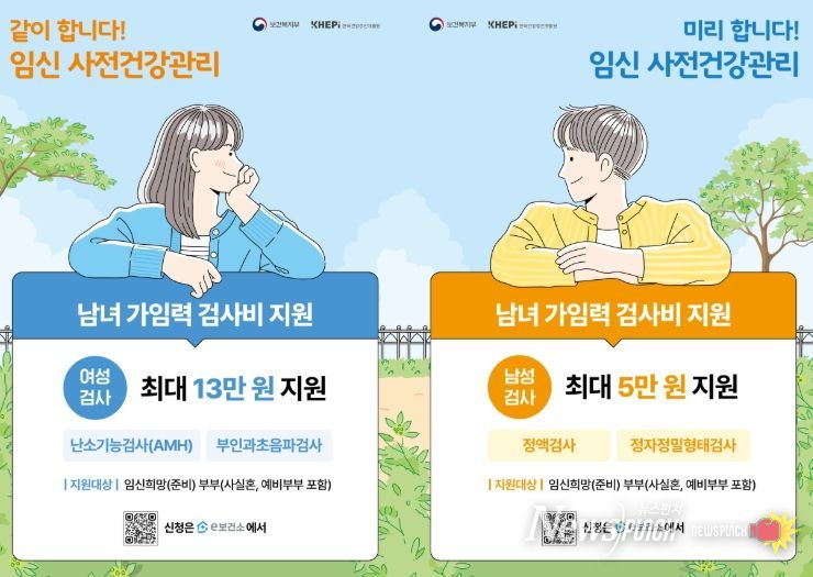 여성은 최대 13만 원, 남성은 최대 5만 원까지 검사비를 지원받을 수 있다.