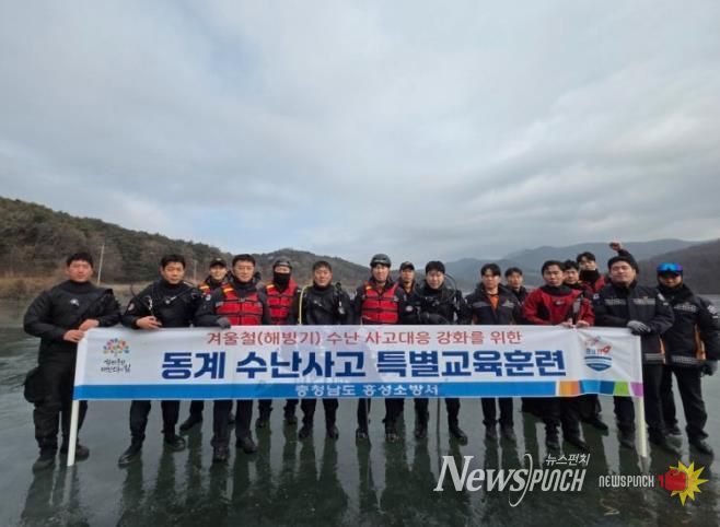 뉴스펀치 이현승 기자 | 홍성소방서는 수난사고 발생 시 신속하고 전문적인 구조 활동을 펼치기 위해 구조구급센터 대원을 대상으로 동계 수중훈련을 실시했다고 밝혔다.