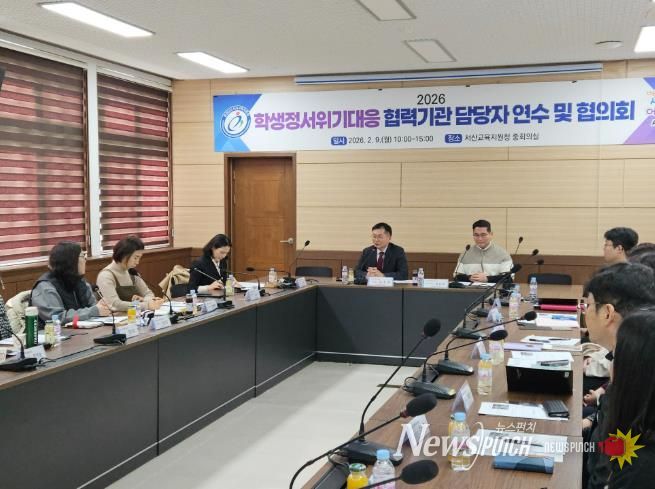 뉴스펀치 이현승 기자 | 충청남도서산교육지원청은 2월 9일 본관 중회의실에서 서산시 주요 연계기관 담당자들과 함께 '2026 학생정서위기 대응 협력기관 담당자 연수 및 협의회'를 개최했다.