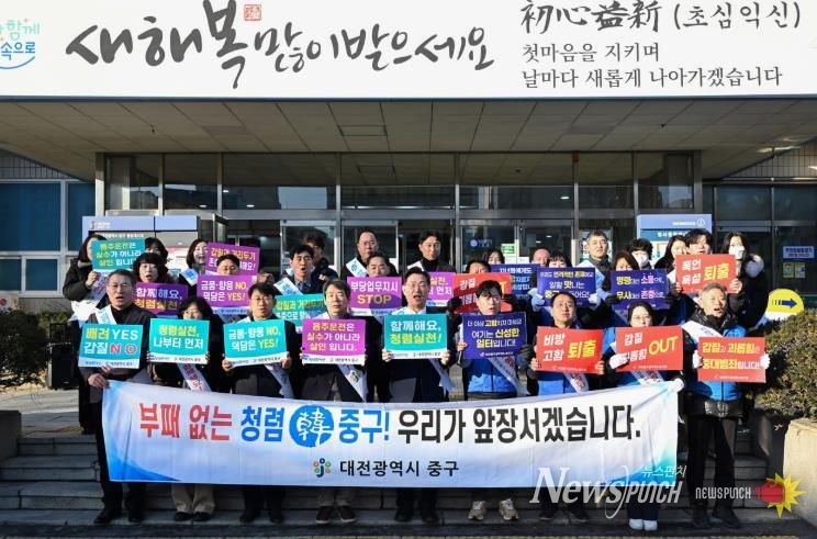 뉴스펀치 이현승 기자 | 대전 중구는 설 명절을 앞둔 9일 아침 출근길 구청사 현관 및 각 부서를 방문하여 음주운전 근절 및 청렴 문화 확산을 위한 청렴 캠페인을 전개했다고 밝혔다.