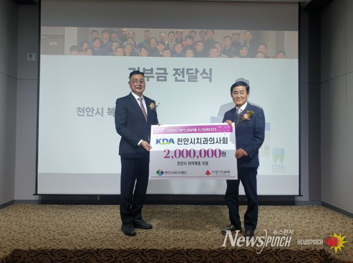 뉴스펀치 이현승 기자 | (재)천안시복지재단은 천안시치과의사회가 지난 6일 열린 정기총회에서 취약계층을 위한 후원금 200만 원을 기탁했다고 밝혔다.