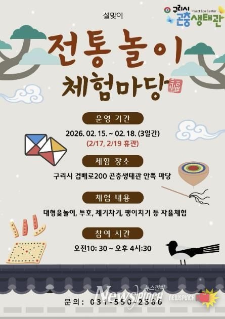 뉴스펀치 박상훈 기자 | 구리시는 민족 최대의 명절 설을 맞아 오는 2월 15일부터 18일까지 구리시 곤충생태관에서 ‘2026 설맞이 전통 놀이 체험 마당’을 운영한다고 밝혔다.