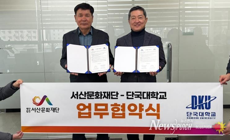뉴스펀치 이현승 기자 | 서산문화재단은 지난 12월 단국대학교 정책경영대학원과 상호 협력체계 구축과 교류 확대를 통한 공동 발전을 도모하고자 교류협력 협약(MOU)을 체결했다고 밝혔다.