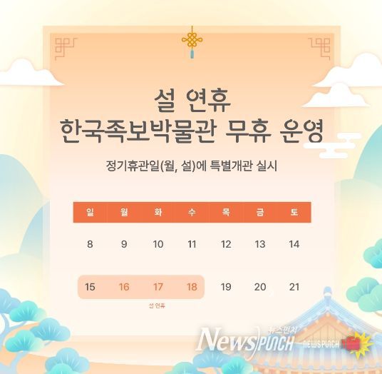 뉴스펀치 이현승 기자 | 대전 중구 한국족보박물관에서는 2026년 설 연휴 기간인 오는 14일부터 18일까지 5일간 휴관 없이 정상 운영한다고 밝혔다.