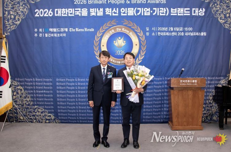 뉴스펀치 김윤걸 기자 | 부산 금정구가 지난 2월 6일, 서울 프레스센터에서 열린 헤럴드미디어 그룹 주최 '2026 대한민국을 빛낼 혁신 인물(기업·기관) 브랜드 대상' 시상식에서 ‘지방자치 부문 대상’을 수상했다.