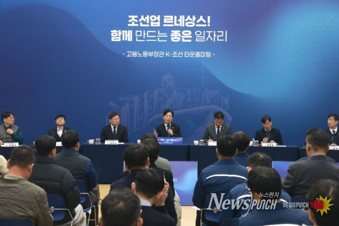 뉴스펀치 김윤걸 기자 | 울산 동구는 2월 9일 오후 4시, 동구청 2층 대강당에서 고용노동부가 주관한 ‘조선업 르네상스! 함께 만드는 좋은 일자리!, 고용노동부장관 K-조선업 타운홀 미팅’을 성황리에 개최했다고 밝혔다.