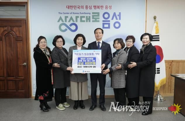 지난 9일, 음성군 자원봉사 13개 단체 및 개인 7명 합동으로 성금 400만 원을 모아 음성군에 전달했다.