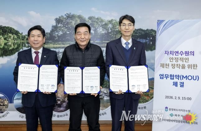 뉴스펀치 이현승 기자 | 지난 9일 제천시와 충청북도자치연수원, (사)대한숙박업중앙회제천시지회는 제천시로 이전한 충청북도자치연수원 교육생의 숙박 편의 지원을 위한 업무협약을 체결했다.