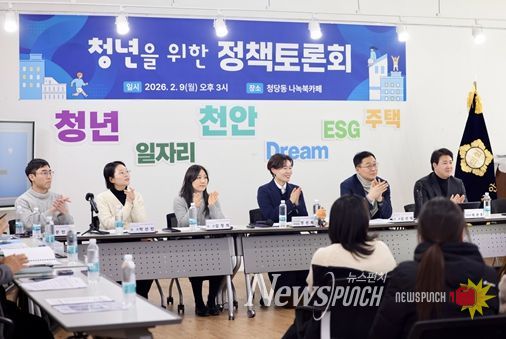 뉴스펀치 이현승 기자 | 천안시의회 경제산업위원회(부위원장 정선희 의원)는 2026년 2월 9일오후 3시, 청당동 나녹북카페에서 '일하고, 살고, 꿈꾸는 청년 천안에 살다'를 주제로 청년을 위한 정책토론회를 개최했다.