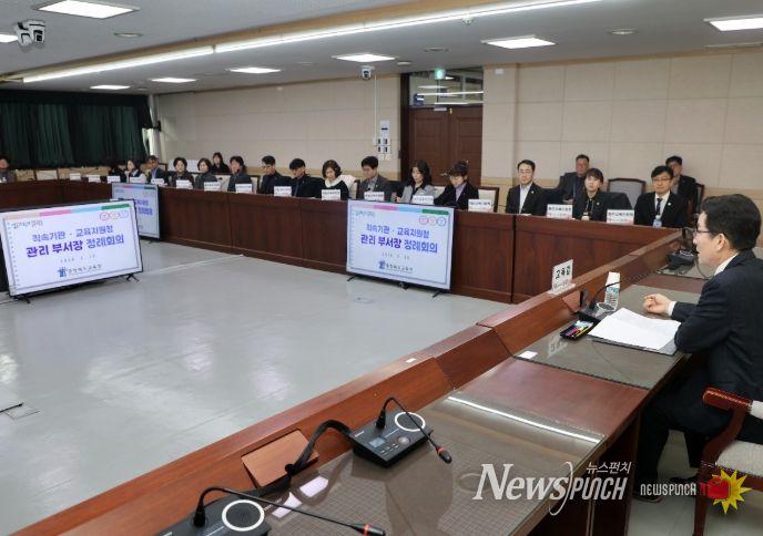 뉴스펀치 이현승 기자 | 충청북도교육청은 10일, 윤건영 교육감을 비롯해 행정국장, 본청 행정직 부서장, 직속기관・교육지원청 관리 부서장 등 총 30여 명이 본청 행복관에서 교육행정 역량 강화를 위한 정례회의를 개최했다.