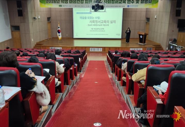 뉴스펀치 최영남 기자 | 광주시교육청은 9~10일 광주창의융합교육원 대강당에서 교원을 대상으로 ‘2026 학생 마음건강 지원사업 안내 및 사회정서교육 설명회’를 개최했다.