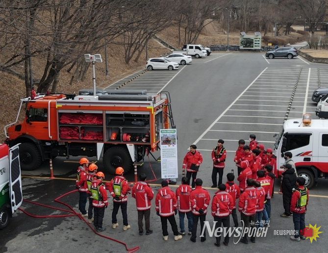 뉴스펀치 이현승 기자 | 대전시는 10일 사정공원 일원에서 산불 발생 시 신속하고 체계적인 대응을 위해 5개 자치구와 산불진화 합동 훈련을 실시했다.