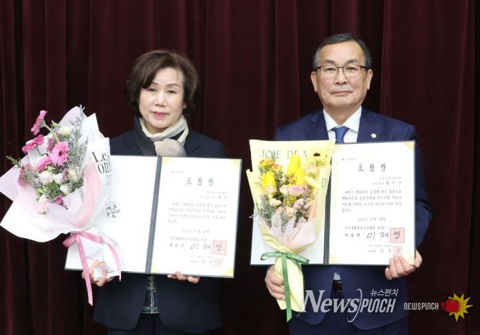 뉴스펀치 최영남 기자 | 전주시의회 최주만 부의장과 박혜숙 문화경제위원장이 10일 전북특별자치도청에서 열린 민주평화통일자문회의 의장표창 전수식에서 의장상을 수상했다.