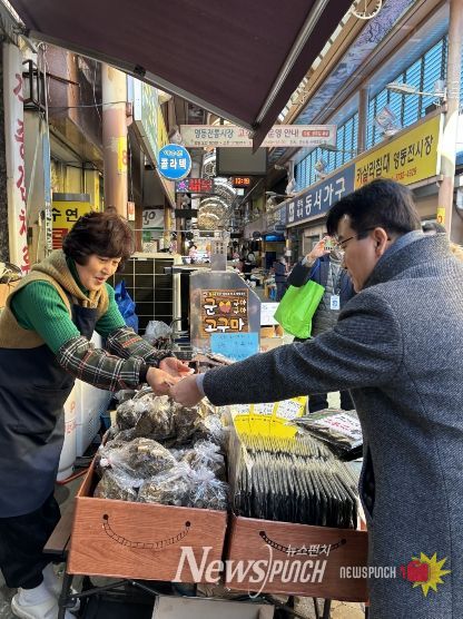 뉴스펀치 이현승 기자 | 충북도 재난안전실은 지난 9일(월) 설 명절을 앞두고 도, 영동군 공무원과 영동군 안전보안관, 자율방재단 등 40명과 함께 영동군 영동전통시장에서 장보기 행사와 안전한 설 명절 보내기 안전캠페인 등을 실시했다.
