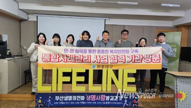 뉴스펀치 김윤걸 기자 | 해운대구는 통합사례관리 사업의 효과적인 추진과 지역사회 복지안전망 강화를 위해 부산생명의전화와 부산광역시사회서비스원을 방문하고, 민·관 협력 기반의 연계 방안을 논의했다고 밝혔다.