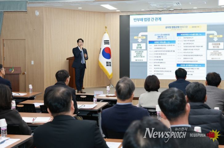 뉴스펀치 이현승 기자 | 금산군은 설 명절을 앞두고 청렴의식 제고와 공직기강 확립을 위해 지난 10일 군청 다목적회의실에서 간부 공무원 청렴교육을 시행했다.