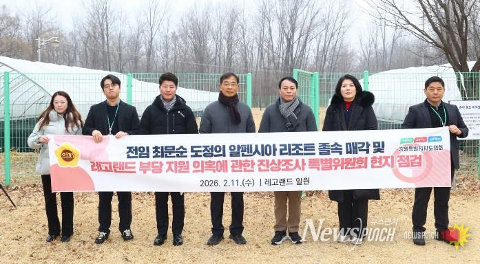 뉴스펀치 조평훈 기자 | 강원특별자치도의회 “전임 최문순 도정의 알펜시아 리조트 졸속 매각 및 레고랜드 부당 지원 의혹에 관한 진상조사 특별위원회”는 2월 11일, 레고랜드 조성 과정에서 이전보존 중인 하중도 유구(지석묘 등) 임시보관시설을 방문해 현지점검을 실시했다.