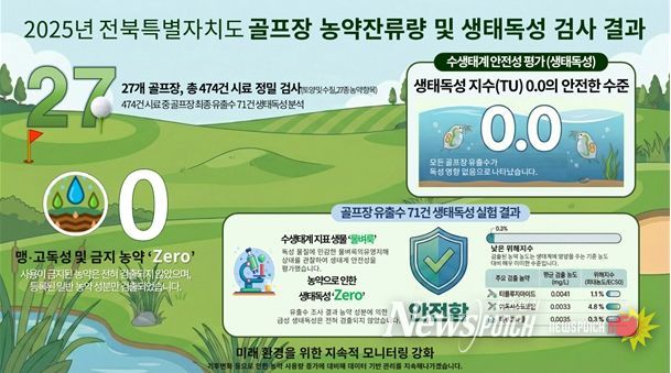 전경식 전북자치도 보건환경연구원장은 “과학적인 검사를 통해 도내 골프장과 주변 환경의 안전성을 지속적으로 확인하고 있다”며 “앞으로도 친환경 생활체육시설 환경 조성을 위해 선제적인 관리체계를 강화해 나가겠다”고 말했다.
