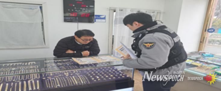 뉴스펀치 최영남 기자 | 무안경찰서는 9일부터 오는 18일까지 10일간 설 명절 특별방범활동을 추진하면서 금은방, 금융기관 등 현금 다액업소에 대한 방범진단을 실시한다.