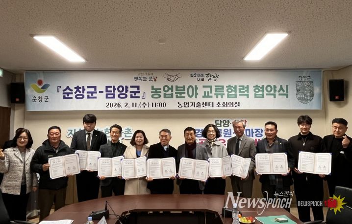 뉴스펀치 정홍균 기자 | 순창군은 11일 농업기술센터 소회의실에서 전라남도 담양군과 농업분야 교류·협력을 위한 협약을 체결했다.
