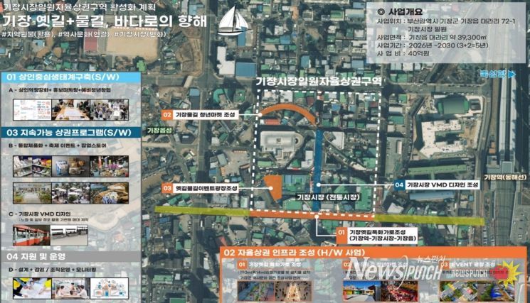 상권활성화 사업은 ‘기장 옛길과 물길, 바다로의 항해’라는 콘셉트 아래 시장 고유의 역사와 문화를 살린 스토리 중심 상권으로 재편하는 데 중점을 둔다.