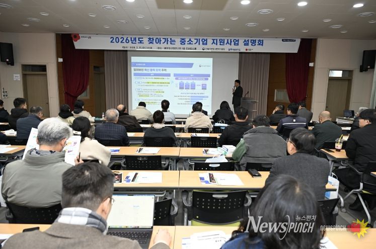 뉴스펀치 정홍균 기자 | 남원시는 2월 11일 오후 2시, 바이오산업연구원 컨퍼런스룸에서 관내 기업인과 소상공인 등 100여 명이 참석한 가운데 유관기관과 함께 '2026년 찾아가는 중소기업 지원사업 설명회'를 개최했다고 밝혔다.