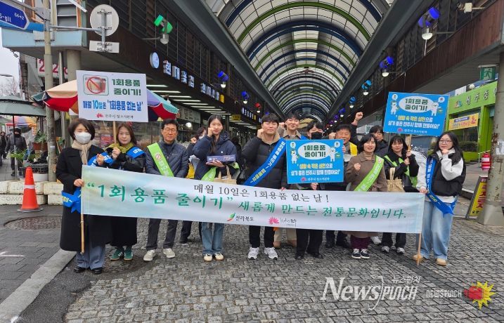 뉴스펀치 최영남 기자 | 전주시는 11일 설 명절을 앞두고 많은 시민이 찾는 전주 중앙시장 일원에서 시민과 상인들을 대상으로 생활 속 1회용품 줄이기를 위한 ‘1회용품 없는 날’ 캠페인을 전개했다.
