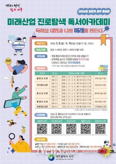 뉴스펀치 이현승 기자 | 대전 서구 공공도서관은 초등·중학생 독서지도 및 독후활동을 위한 ‘상반기 미래산업 진로 탐색 독서아카데미’를 운영한다고 12일 밝혔다.