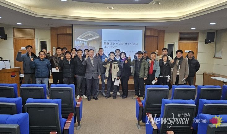 뉴스펀치 조평훈 기자 | 강릉시는 11일 홍제정수장 회의실에서 관계 공무원과 급수공사 대행업체 대표자 등 30여 명이 참석한 가운데, 상수도 사고 긴급복구 체계 점검과 2026년 주요행사 대응 준비를 위한 간담회를 개최했다고 밝혔다.