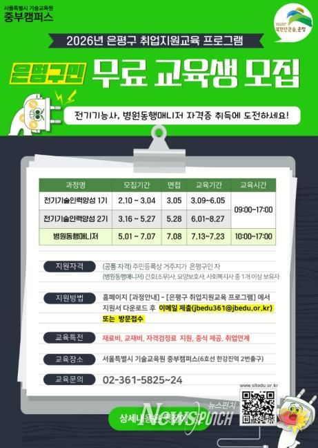 뉴스펀치 박상훈 기자 | 서울 은평구는 구민의 취업역량 강화를 위해 ‘2026년 은평구 취업지원교육 프로그램’ 교육생을 모집한다고 밝혔다.