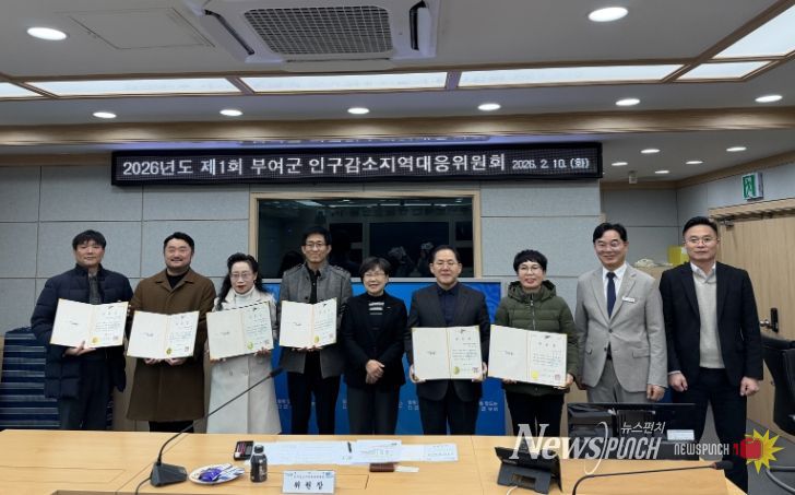 뉴스펀치 이현승 기자 | 부여군은 군청 재난종합상황실에서 '2026년도 제1회 부여군 인구감소지역대응위원회'를 개최하고, 위원 위촉과 함께 인구감소지역대응 시행계획(안)을 심의·의결했다고 12일 밝혔다.