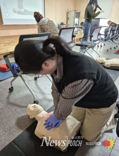 참가자들은 교육용 심폐소생술 모형을 활용해 직접 가슴압박과 AED 사용을 체험하며 실제 응급상황에 대비한 대응 능력을 함양했다.