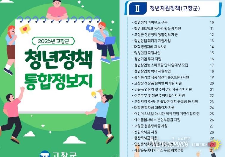 뉴스펀치 정홍균 기자 | 전북 고창군이 청년정책을 한눈에 확인할 수 있는 ‘2026년 고창군 청년정책 통합정보지’를 발간했다.