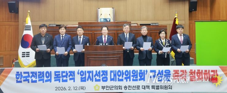 뉴스펀치 최영남 기자 | 부안군의회 송전선로 대책 특별위원회는 12일 전북 서남권 해상풍력 송전선로 건설사업과 관련해 한국전력공사가 추진 중인 ‘입지선정 대안위원회’ 구성에 대해 강력히 반대하며, 해당 절차의 즉각 중단과 원점 재검토를 촉구했다.