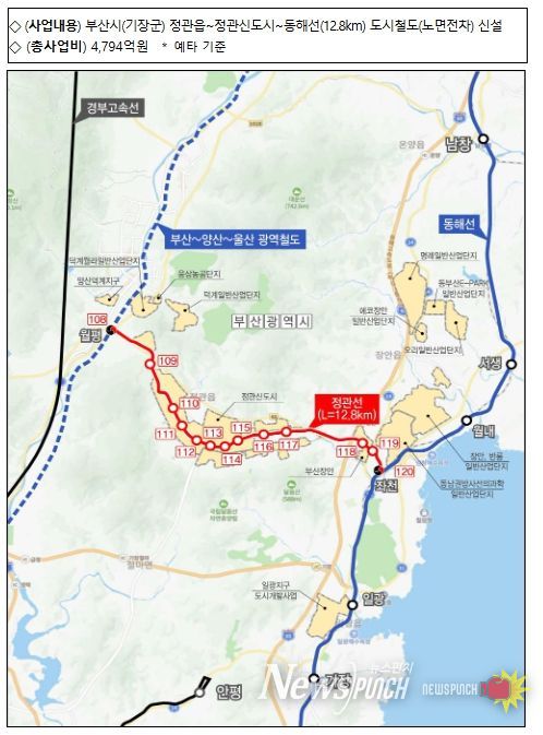 뉴스펀치 정홍균 기자 | 국토교통부는 2월 12일 동해선 삼척-강릉 철도 고속화 사업과 부산도시철도 정관선 건설사업이 사업 타당성을 확보하여 예비타당성조사를 통과했다고 밝혔다.