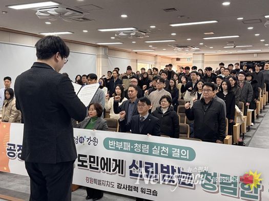 뉴스펀치 조평훈 기자 | 강원특별자치도 감사위원회는 2월 12일 강원특별자치도 공무원교육원에서 도 및 18개 시군 자체감사기구 직원 140여 명이 참석한 가운데 ‘2026년도 강원특별자치도 감사협력 워크숍’을 개최했다.