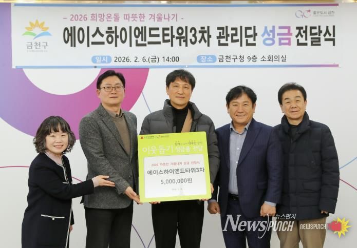 지난 6일에는 에이스하이엔드타워3차 지식산업센터 관리단(회장 김영남)이 관내 취약계층을 위해 성금 500만 원을 기부했다. 성금 전달식에는 김영남 에이스하이엔드타워3차 지식산업센터 관리단 회장, 임원 등 7여 명이 참석했다.