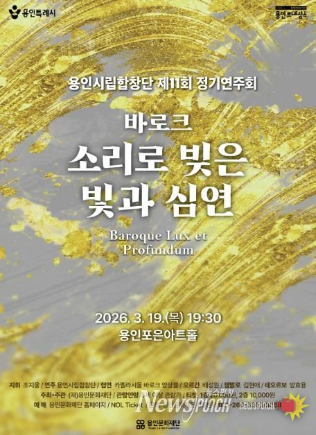뉴스펀치 박상훈 기자 | 용인문화재단은 오는 3월 19일 오후 7시 30분, 포은아트홀에서 용인시립합창단 제11회 정기연주회 '바로크 – 소리로 빚은 빛과 심연'을 개최한다.