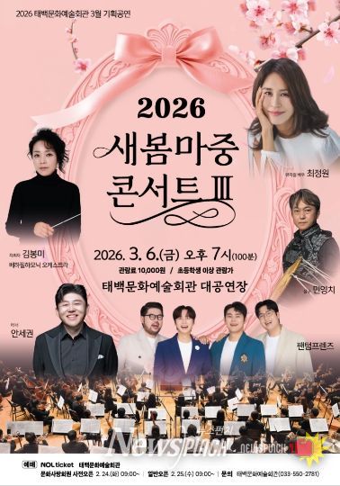 뉴스펀치 조평훈 기자 | 태백시는 태백문화예술회관은 3에서 기획공연으로 『새봄마중 콘서트 Ⅲ』를 오는 3월 6일(금) 오후 7시 태백문화예술회관 대공연장에서 개최한다고 밝혔다.