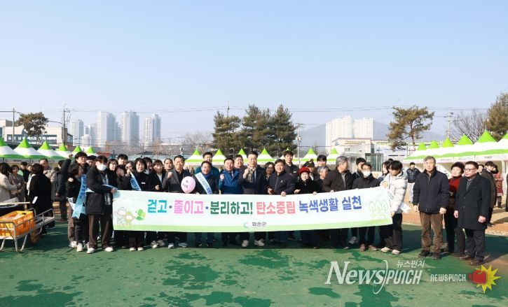 뉴스펀치 강영선 기자 | 화순군은 지난 12일 민족 최대 명절 설을 맞아 화순읍 광덕문화광장에서 군민과 함께하는 ‘탄소중립 녹색생활 실천 캠페인’을 실시했다고 밝혔다.