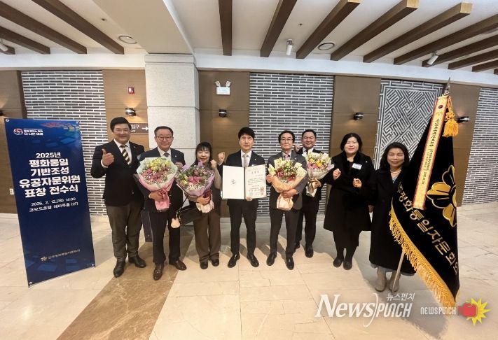 뉴스펀치 김윤걸 기자 | 국민과 함께 만드는 평화 공존과 공동 성장을 목표로 새롭게 출범한 제22기 민주평화통일자문회의 부산연제구협의회(협의회장 김영민)는 2026.2.12. 14:00 부산코모도호텔 2층 해마루홀에서 진행된 “2025년 평화통일 기반조성 유공자문위원 표창 전수식”에서 평화통일 기반조성, 민주평통 발전, 국가 및 사회 발전에 뚜렷한 공적을 인정받아 부산에서는 유일하게 “2025년 민주평화통일자문회의 의장(대통령) 단체표창” 수상의 쾌거를 거뒀다.
