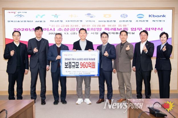 구미시는 13일 시청 국제통상협력실에서 관내 금융기관, 경북신용보증재단과 협약을 맺고 ‘2026년 구미시 소상공인 새희망 특례보증 사업’을 본격 시행했다.