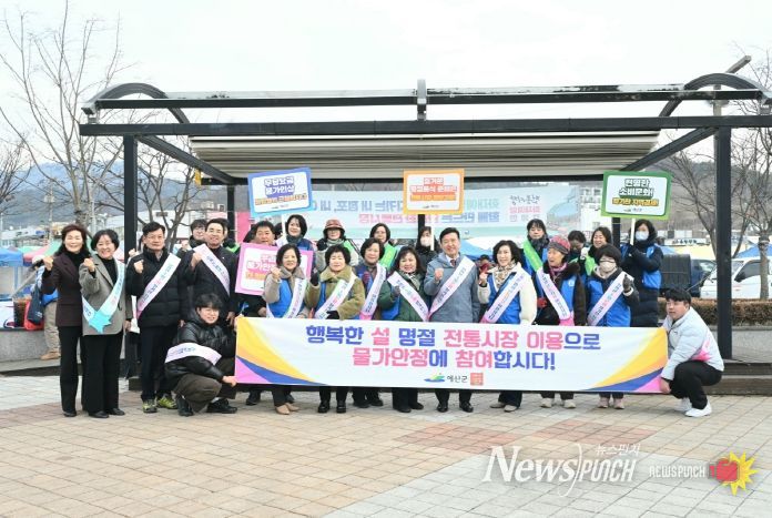 뉴스펀치 이현승 기자 | 예산군은 설 명절을 맞아 관내 전통시장 정기 오일장 일정에 맞춰 담당부서 직원과 소비자교육중앙회 예산군지회 회원 등이 참여한 가운데 전통시장 장보기와 물가안정 캠페인을 펼쳤다.