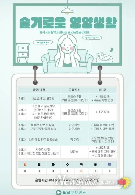 뉴스펀치 박상훈 기자 | 수원시 팔달구보건소가 1인 가구와 건강 취약계층을 대상으로 영양 관리 프로그램 ‘나를 위한 한 끼, 슬기로운 영양생활’을 운영한다.