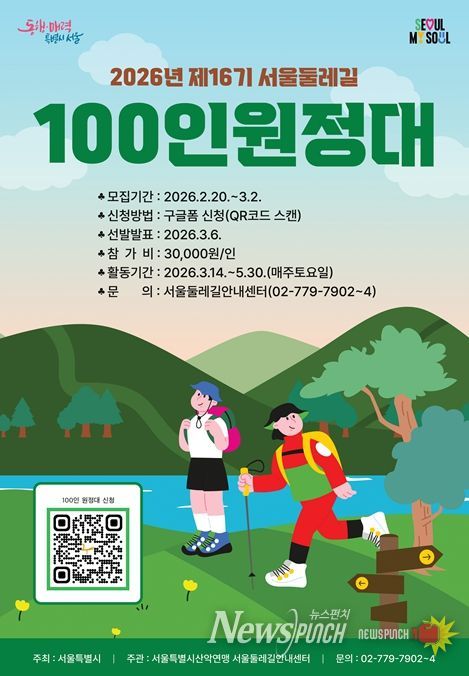 김영환 서울시 정원도시국장은 “100인 원정대는 단순히 걷는 행사를 넘어 함께 땀 흘리며 서울의 아름다운 자연을 온몸으로 느끼는 특별한 경험이 될 것”이라며, “새로운 시작을 하기 좋은 봄을 맞아 서울둘레길 완주라는 값진 목표에 도전하실 시민 여러분의 많은 참여를 바란다”고 말했다.