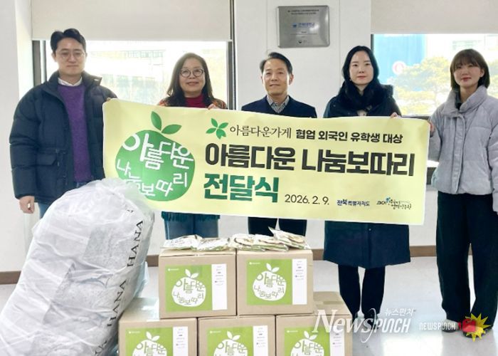 뉴스펀치 정홍균 기자 | 전북국제협력진흥원은 2월 설 명절을 맞아 저소득 외국인 유학생과 사회복지시설을 대상으로 사회공헌활동을 추진하며 지역사회 나눔을 실천했다.