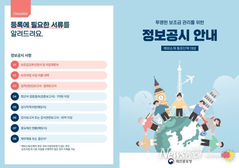 뉴스펀치 정홍균 기자 | 재외동포청은 해외 소재 재외동포단체에 지원되는 국고보조금 사용내역을 「보조금 관리에 관한 법률」에 따라 공개한다고 밝혔다.