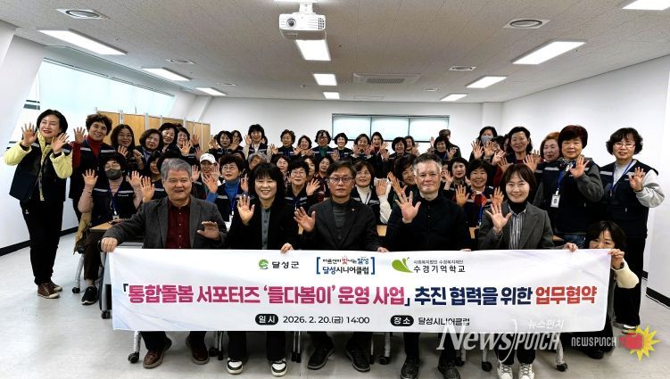 뉴스펀치 조평훈 기자 | 달성군은 지난 20일 달성시니어클럽(관장 김지웅) 및 수경기억학교(원장 이칠선)와 함께'통합돌봄 서포터즈 ‘들다봄이’ 사업'추진을 위한 업무협약을 체결했다고 밝혔다.