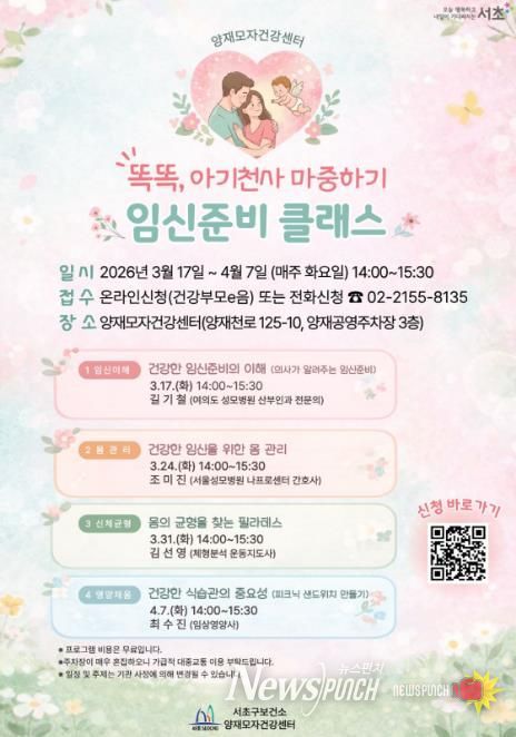 뉴스펀치 박상훈 기자 | 서울 서초구가 2026년을 맞아 양재모자건강센터의 모자건강 프로그램을 ‘온가족 활력 프로그램’으로 새롭게 단장하여 확대 운영한다고 밝혔다.